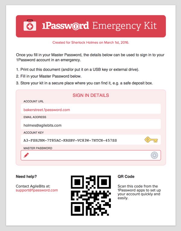 You can print this out, write your password on the emergency kit and used it until you remember your password. Afterwards you can put the emergency kit page in a safe place.